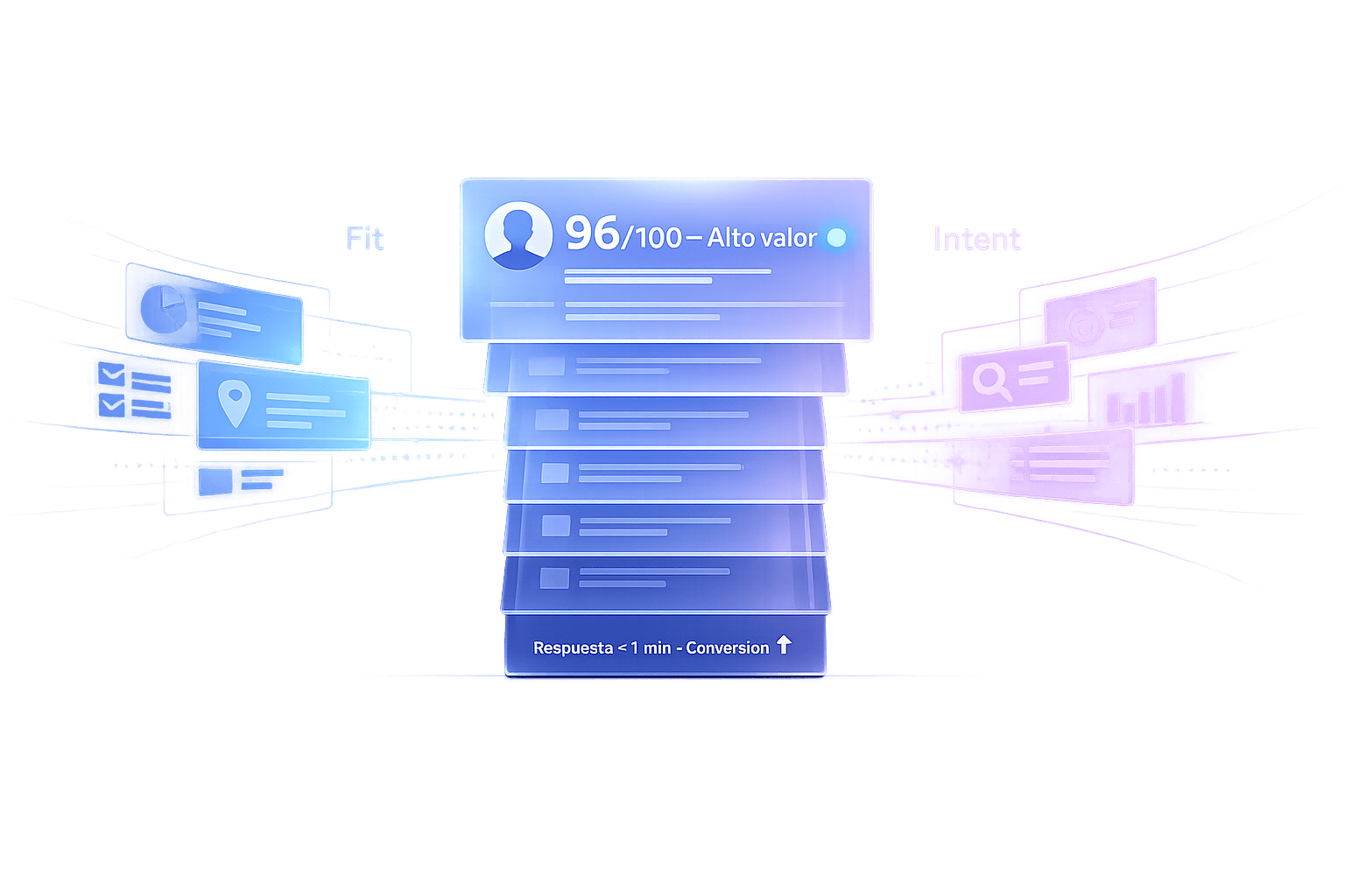 El Intent analiza señales digitales que reflejan el interés real del lead. A diferencia del Fit, este se basa en datos implícitos, como visitas a páginas de precios, descargas de casos de éxito, asistencia a webinars, solicitudes de demo o consultas de presupuesto. Cada acción tiene un peso diferente; por ejemplo, solicitar una cotización vale más que simplemente abrir un newsletter.